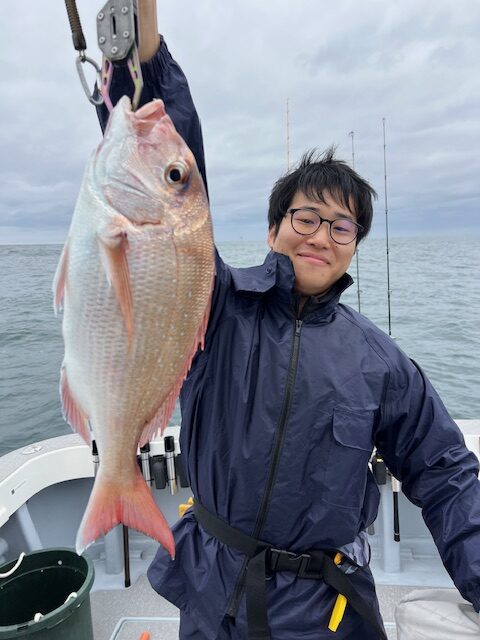 もちろん3名様はレンタルタックルでお二人様は陸釣りでの経験も無くリールの使い方から教えてどうなる事かと思いましたが見事に真鯛46cmをゲットできましたよ⤴️