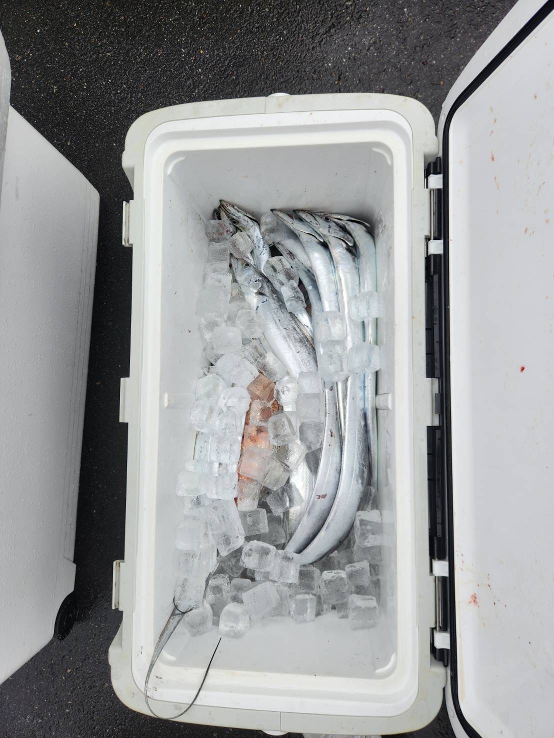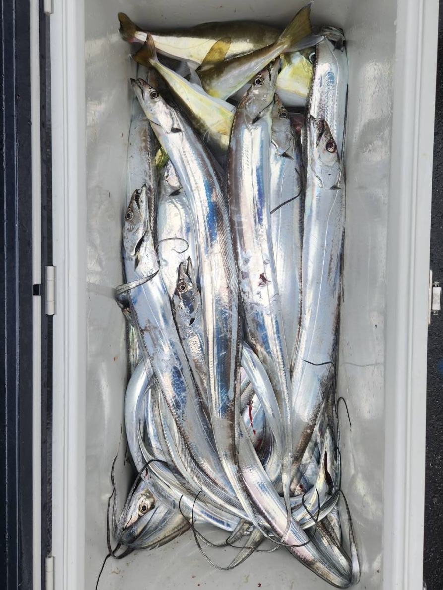 後はタイラバではホウボウ、ガンゾウ、サバフクで経験豊かなMくんはホウボウ2〜3匹にサバフク釣って熟睡😭飲み過ぎでしょ😭太刀魚は入れ食いですぐにお一人10本以上釣れましたので最後に青物を狙いに行きましたが配当無し😭やはり🔰さんにはワンピッチジャークや早巻は難いようですね😂